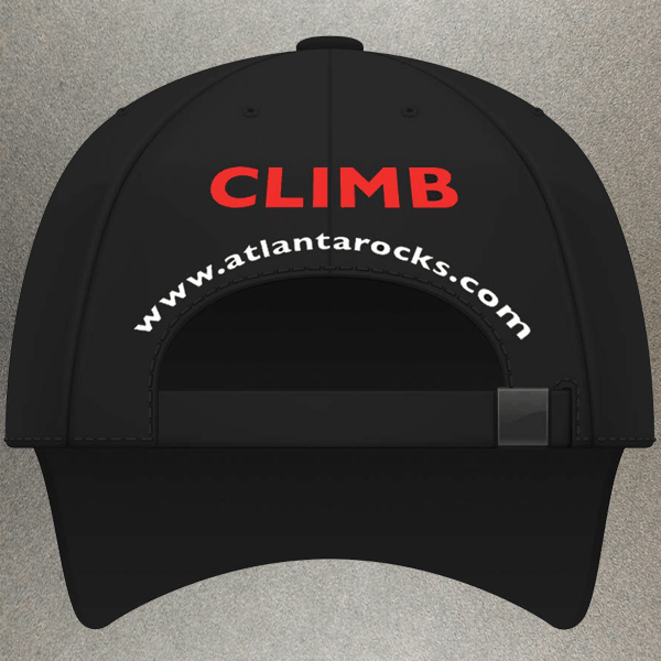 Atlanta Rocks! "Climber Text" T-Shirts (100% cotton) | 10+ for only $11.95 each | blue imprint front and blue "Climb—Atlanta Rocks!" imprint back | available in Black | Co-Ed Cut).